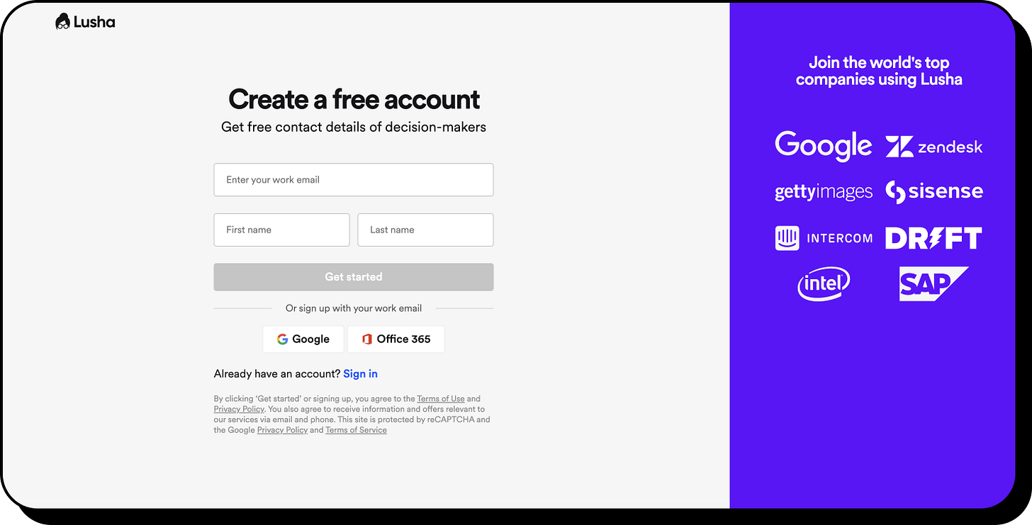 Lusha: Got customers that you’re super proud of? Let people know! Seeing that top companies already trust a product can give users that extra nudge they need to sign up.