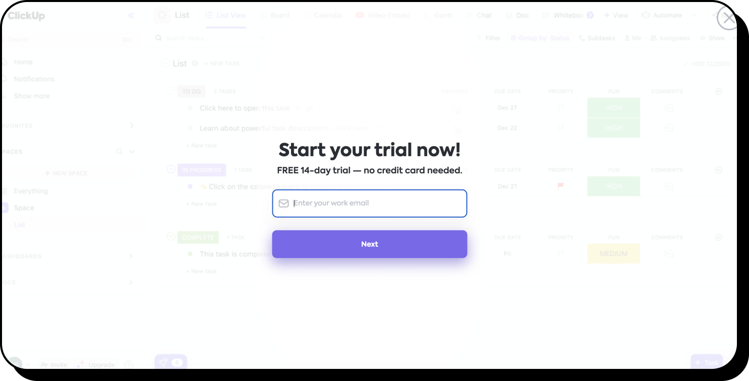 Either way, in these situations, a little bit of extra boost around your product’s value can pull them towards creating an account and actually trying out the product.