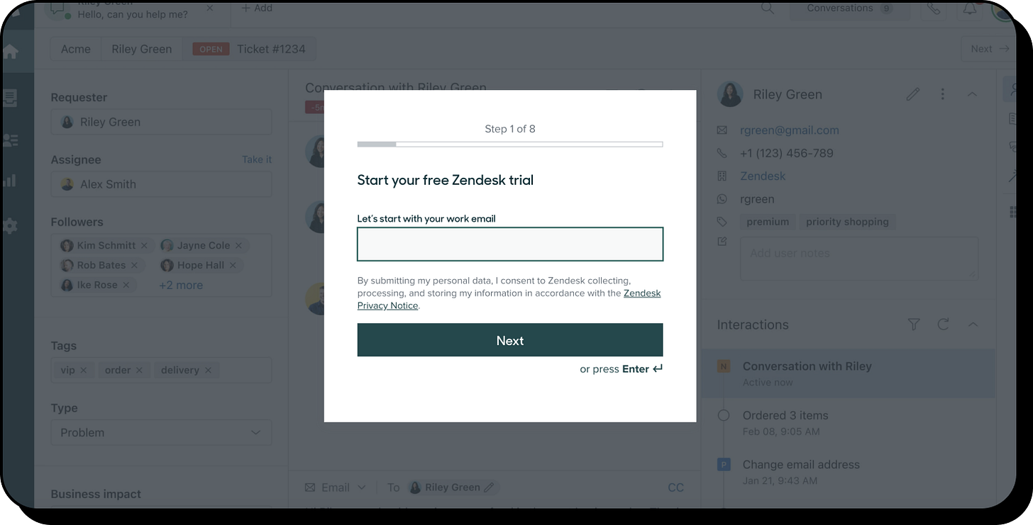 ClickUp and Zendesk brilliantly teases new users with a slightly faded background that shows the product. This removes so much friction by making users feel like they’re just one click away.