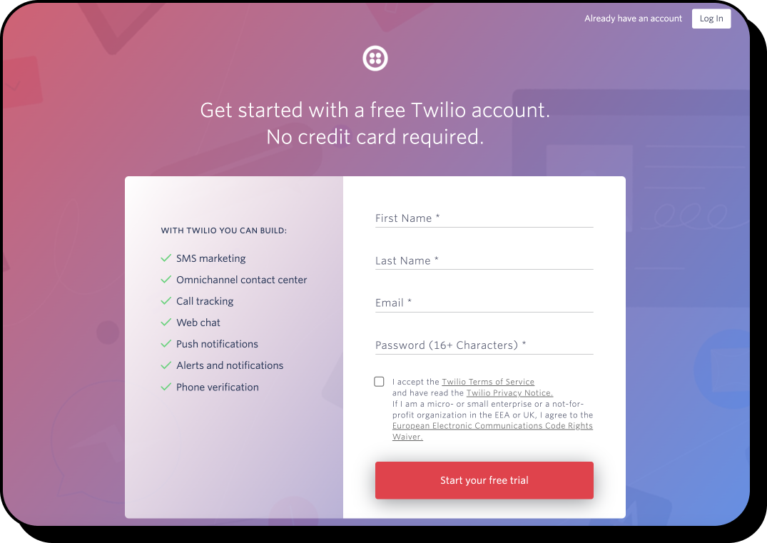 Twilio lets users know how many cool things they’ll be able to do once they get set up.