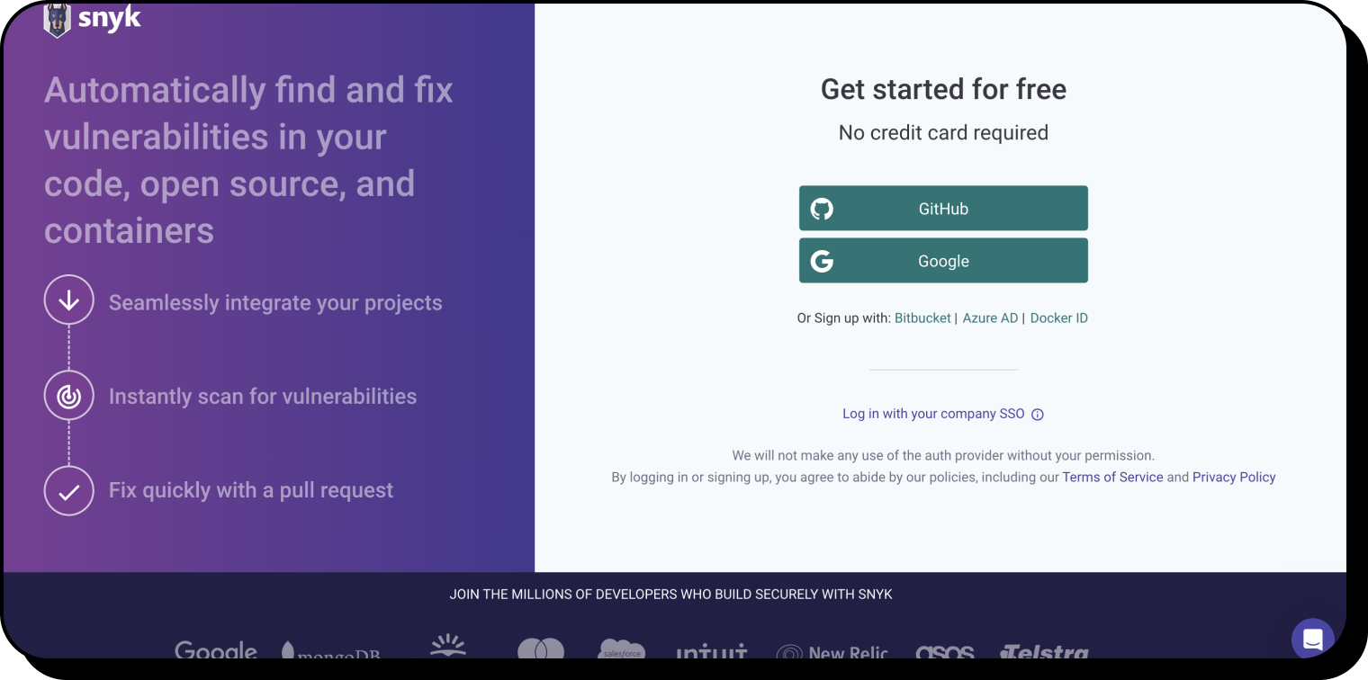 Both Snyk and MongoDB take the opportunity to remind users about the value they could get by signing up. A clear and motivating value proposition could be the reminder that an exploring user needs to hear before they commit to giving your product a try.
